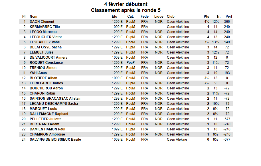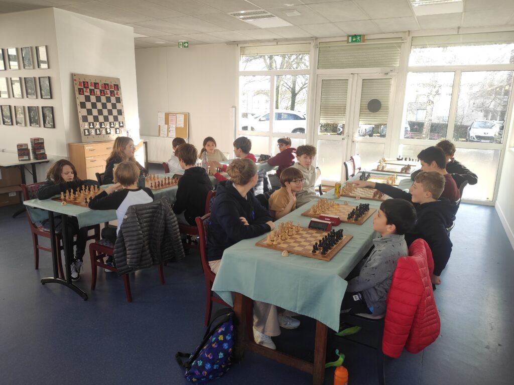 Ce mercredi 04 février avait lieu le tournoi jeunes qui regroupait les élèves de Maël ( écoles, MJC et joueurs du club ) en 5 rondes avec une cadence de 12 min+3 sec/coup.